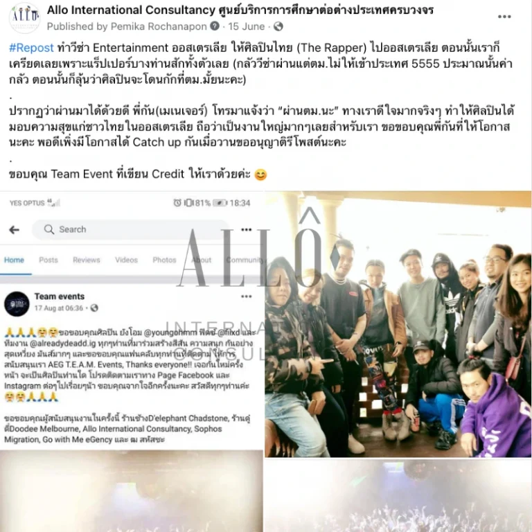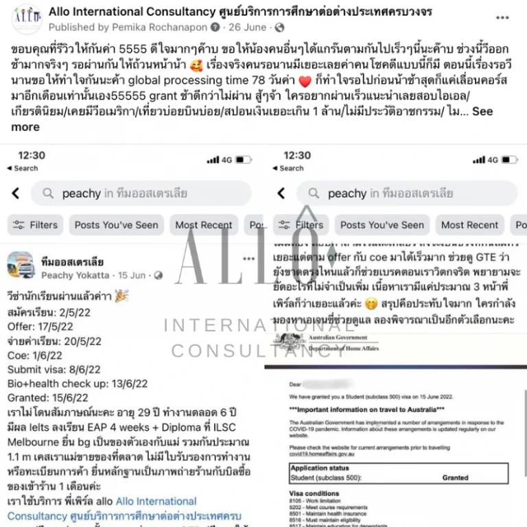หากคุณกำลังปวดหัวกับการกรอกเอกสารวีซ่า ไม่ว่าจะเป็นวีซ่าชั่วคราวสำหรับเข้ามาในประเทศชั่วคราวไม่ว่าจะเป็นการท่องเที่ยว การศึกษา การทำวีซ่าเองนั้นจะมีขั้นตอนมากมาย ในวันนี้ ทางบริษัท ALLO ของเราได้มีบริการรับทำ วีซ่าออสเตรเลีย และที่สำคัญอย่างยิ่ง เราให้บริการอย่างเป็นกันเอง และเราสัญญาว่าจะอำนวยความสะดวกแก่ลูกค้าทุกท่านอย่างเต็มความสามารถของเราอย่างแน่นอนซึ่งทางบริษัทเรารับทำวีซ่าสำหรับออสเตรเลีย เช่น วีซ่าท่องเที่ยว วีซ่านักเรียน วีซ่าทำงาน วีซ่าเยี่ยมเยื่อน วีซ่าสำหรับศิลปิน